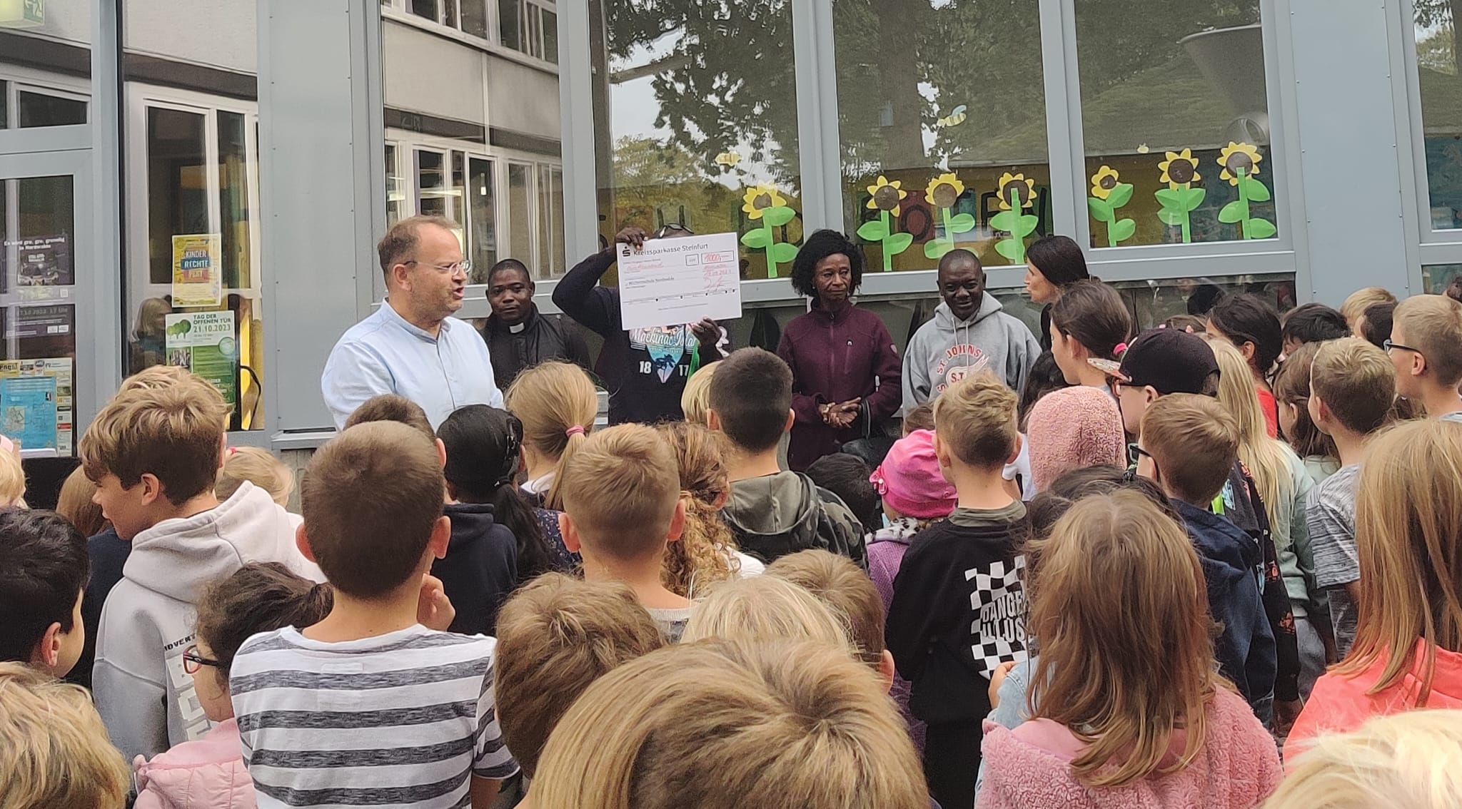 Diese Woche war der Schulleiter unserer Partner-Schule in Yipala zu Besuch an der Wichernschule. Nach dem Schulsingen bedankte sich Herr Mahama bei den Kindern, Eltern und dem Kollegium der Wichernschule für die großzügigen Spenden und freut sich auf eine gute Zusammenarbeit.