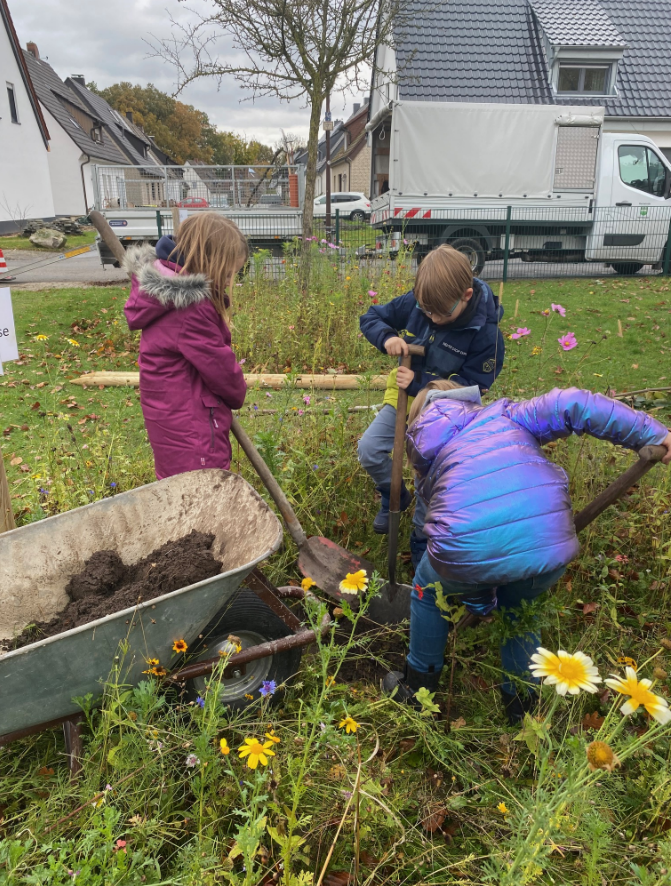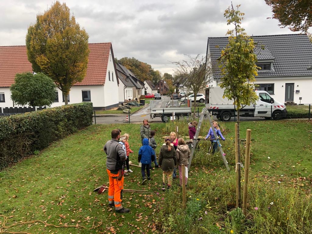 Die Natur- und Umwelt-AG unserer Schule bleibt weiter fleißig und hat am vergangenen Freitag die Bäume gesetzt, die vom Erlös des Flohmarktes aus dem vergangenen Schuljahr gekauft wurden. Vor der Wichernschule zur Straßenseite Barkhof stehen nun ein Bienenbaum und eine Blumenesche, die als besonders insektenfreundliche Bäume gelten.