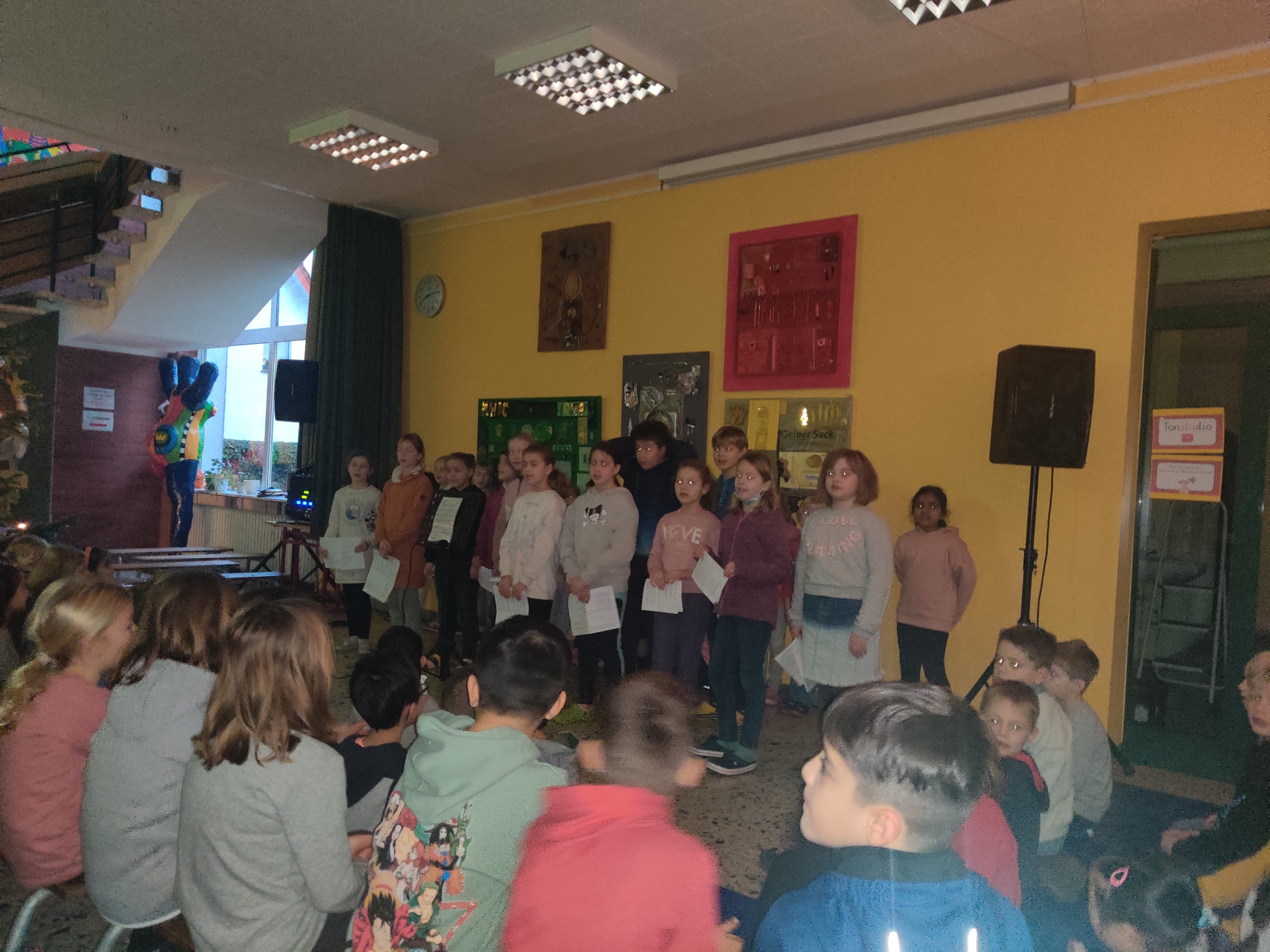 Am 19. Dezember verlegten wir aus Sicherheitsgründen unser Adventssingen spontan in die Schule. Der Weg zur Kirche war uns zu glatt und gefährlich.
