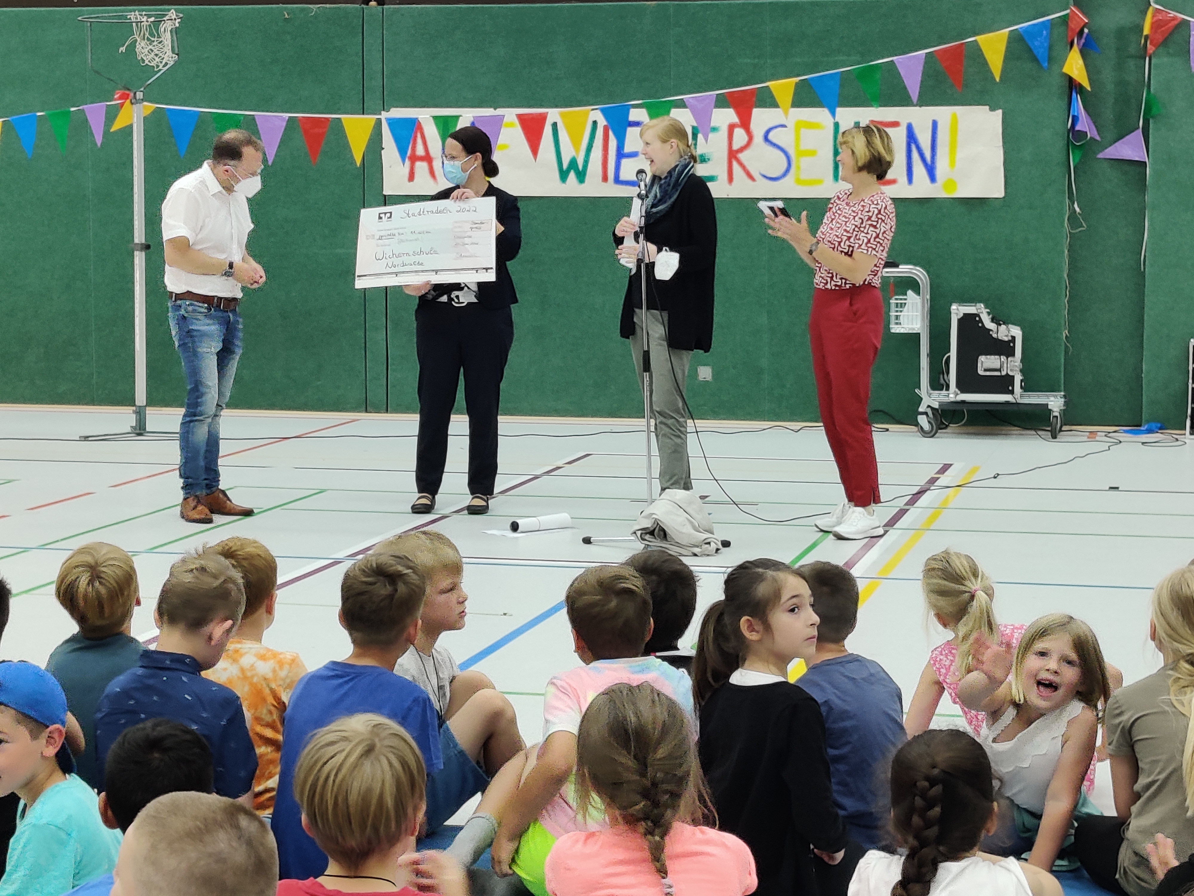 Die Bürgermeisterin und Frau Edeling lobten die Wichernschule als Team sehr: Zweimal wäre dieses um den Äquator geradelt!