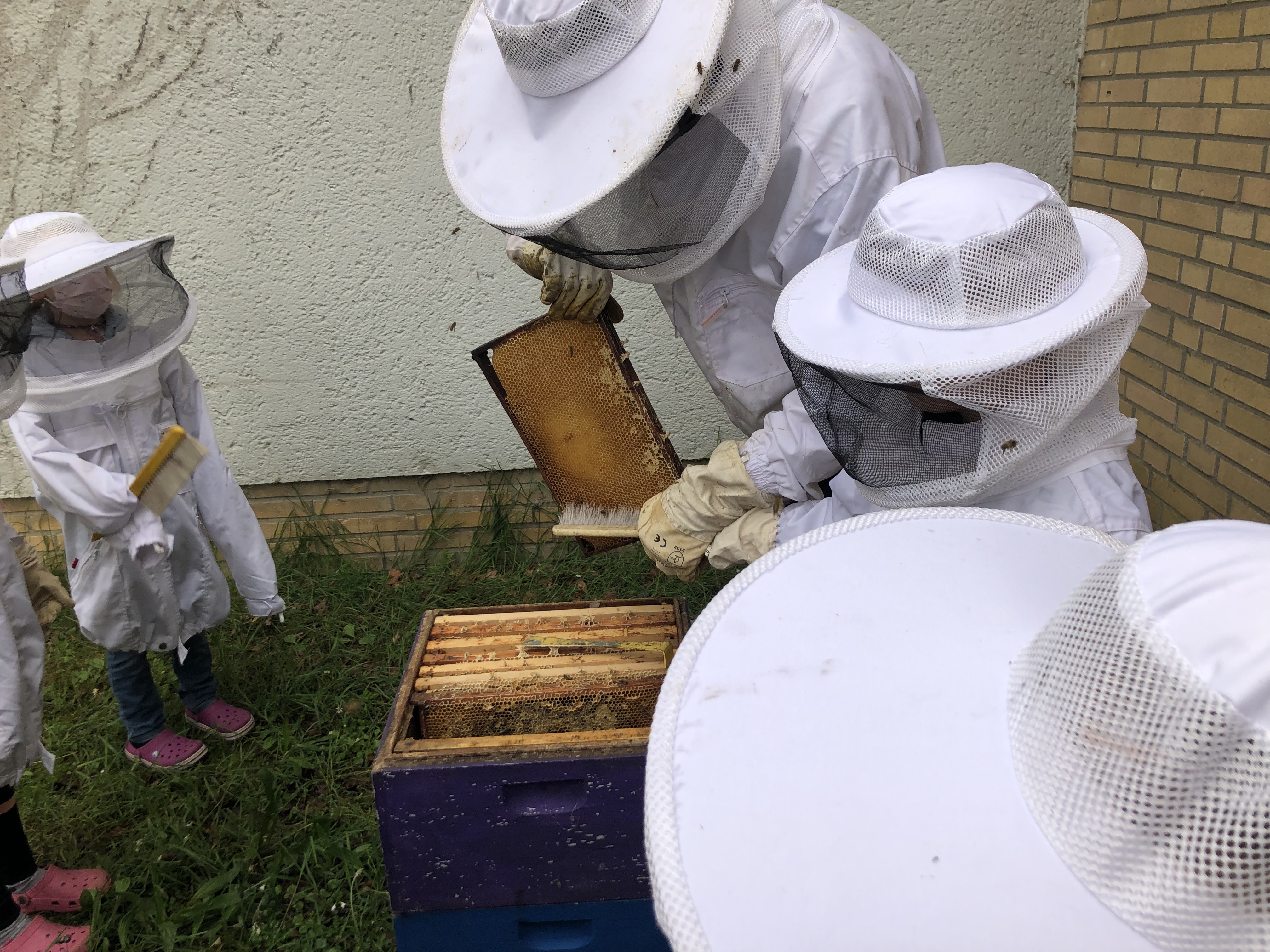 Nachdem die Klasse 2b in der letzten Woche in Kleingruppen an unserem Bienenstock gearbeitet hat, war das Ergebnis: die Waben sind voll - wir müssen den ersten Honig schleudern!