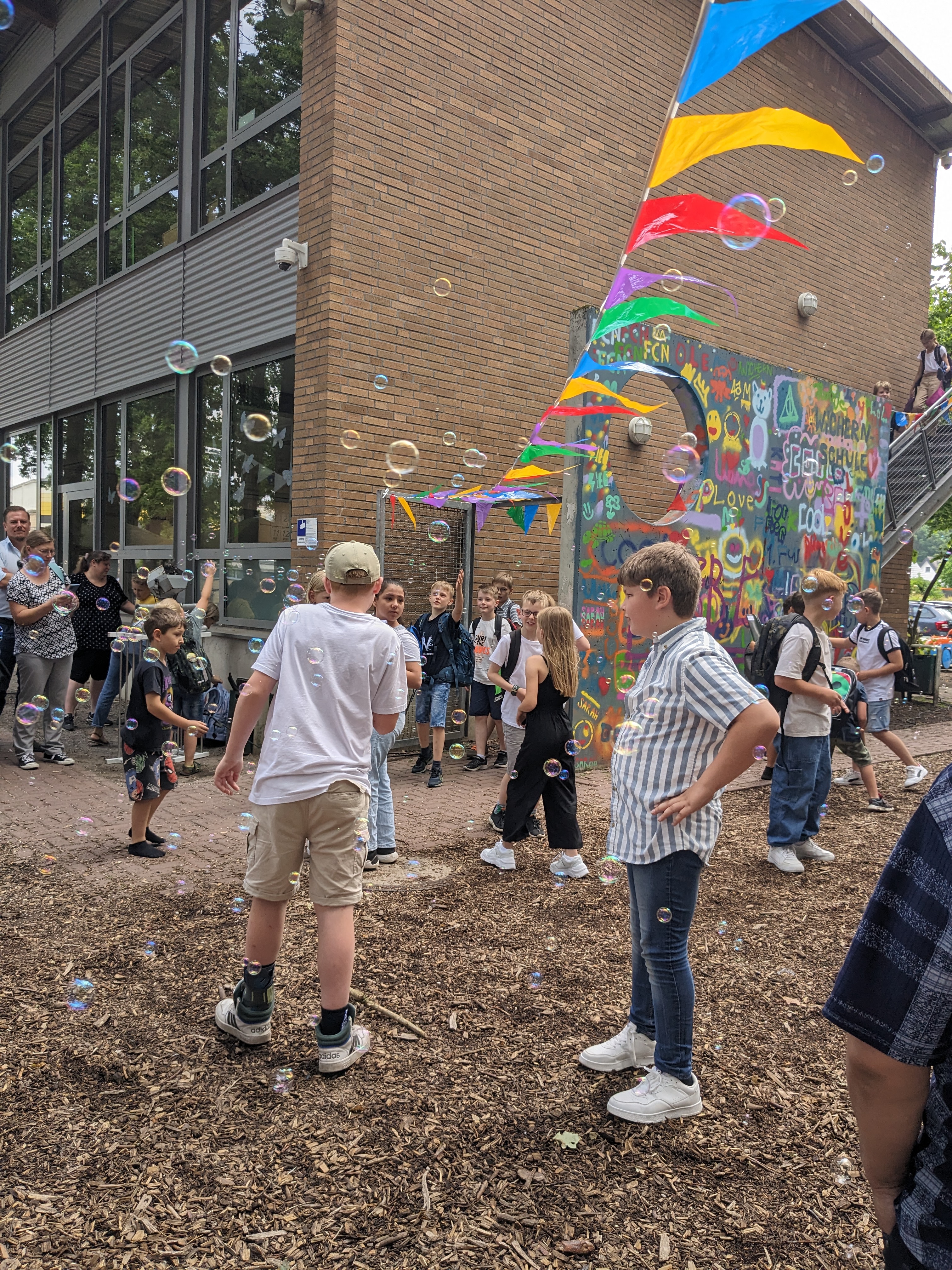 Mit diesem stimmungsvollen Foto vom diesjährigen Sommerschulsingen verabschieden sich die Leher*Innen und Schüler*Innen der Wichernschule in die Sommerferien.