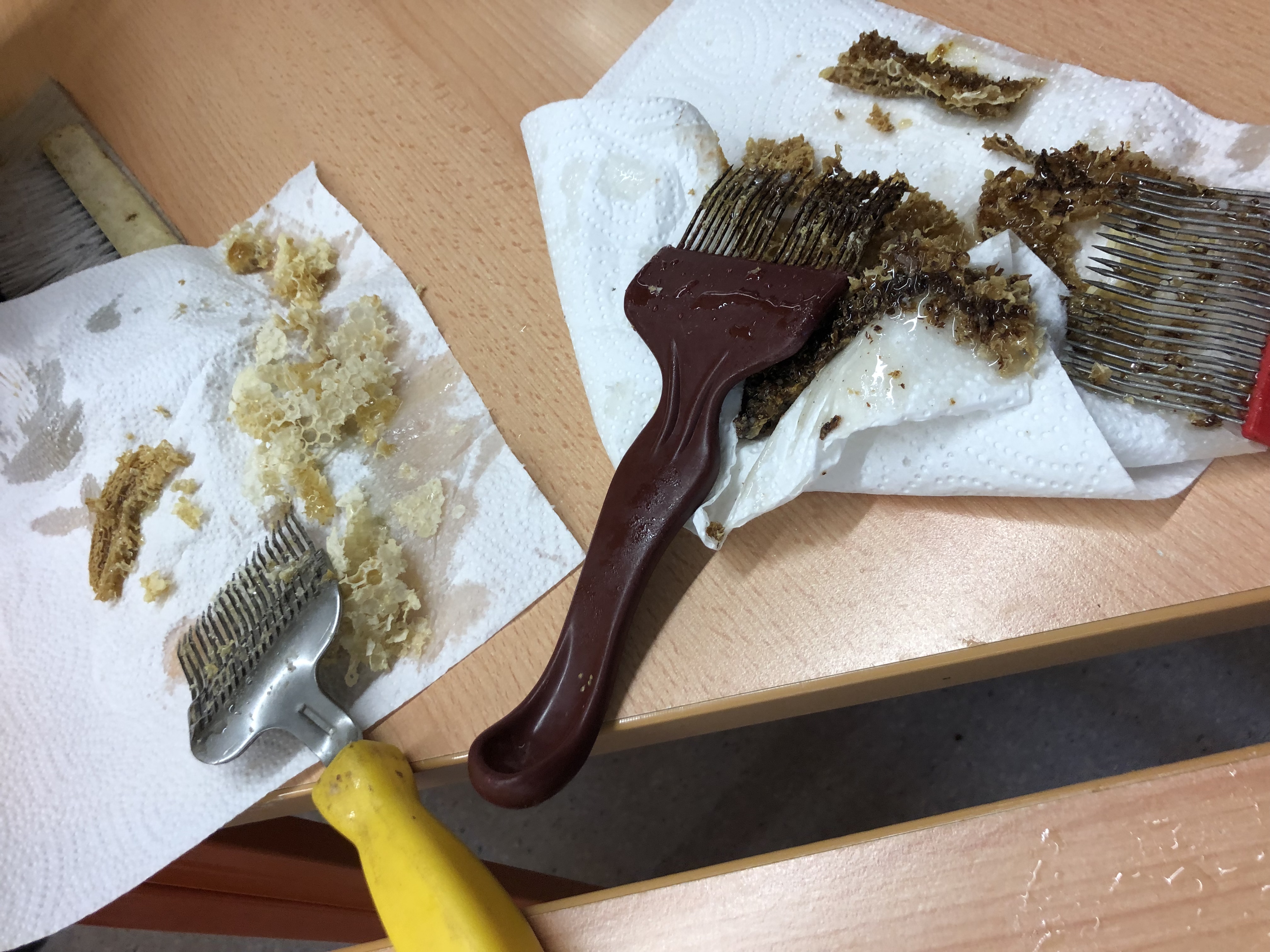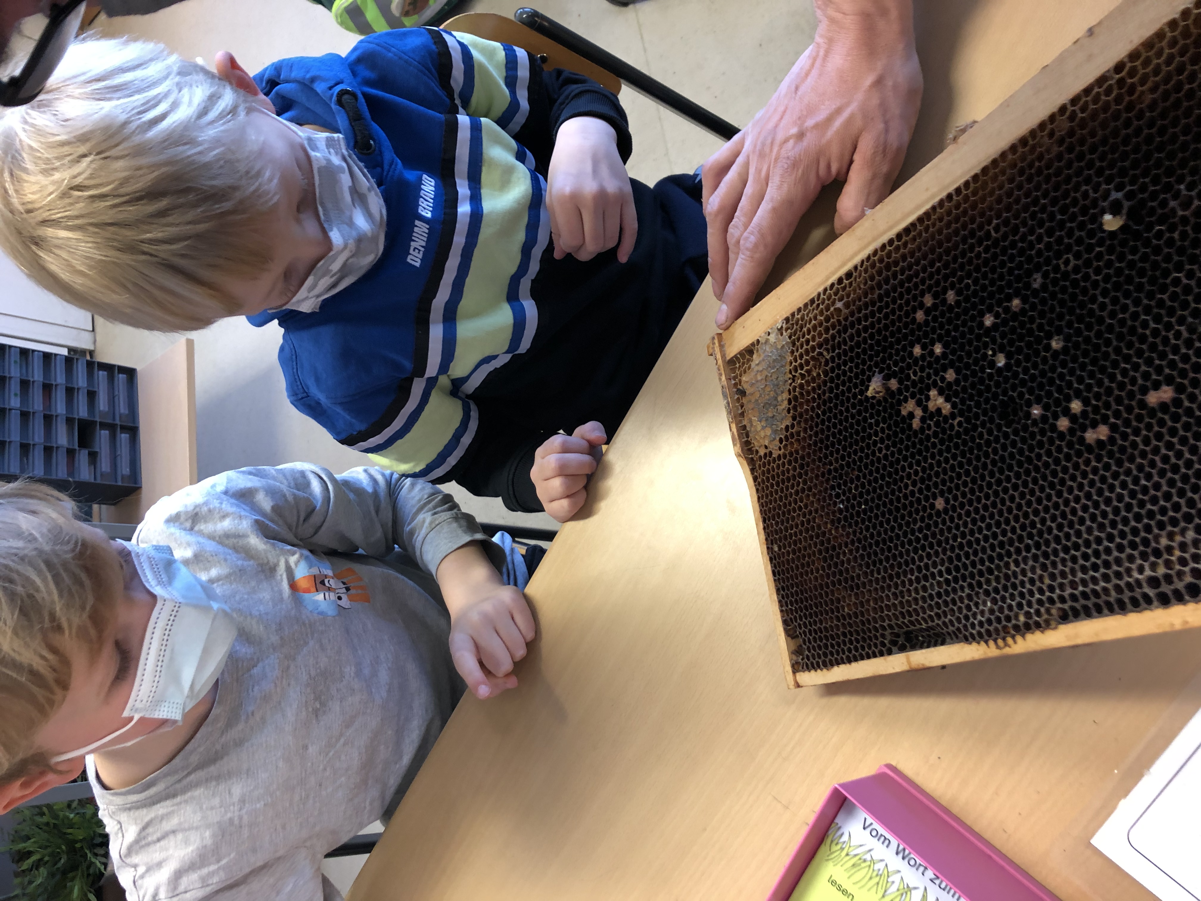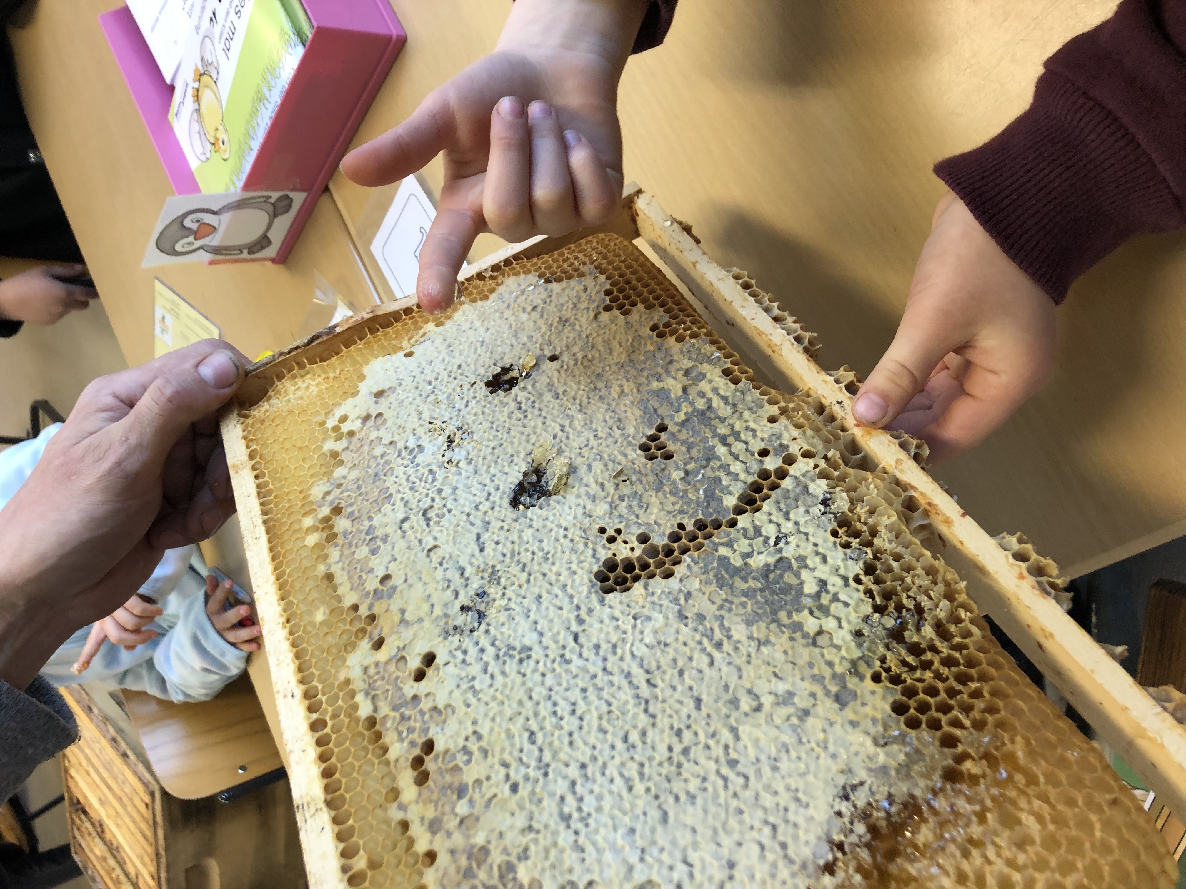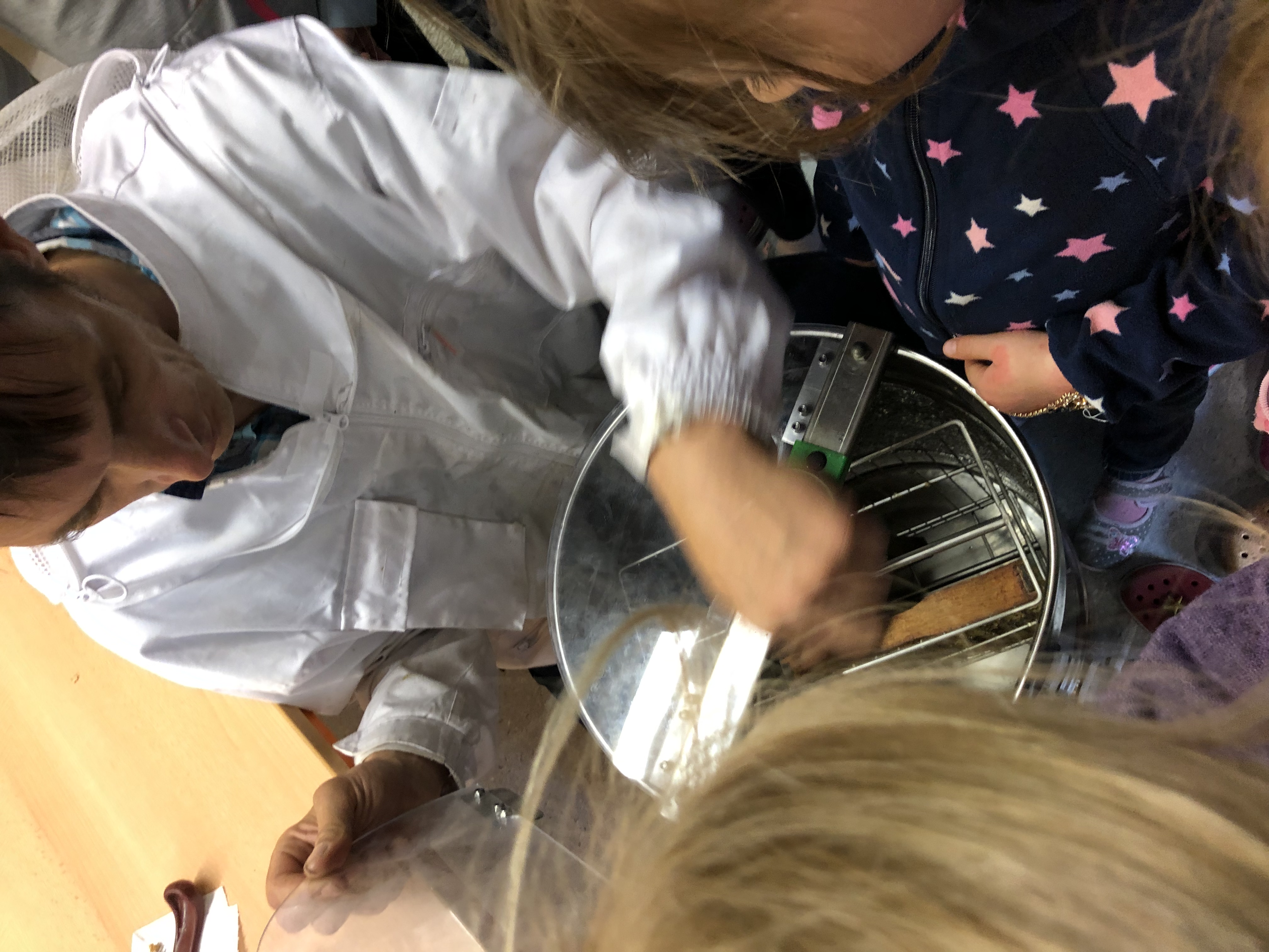 Nachdem die Klasse 2b in der letzten Woche in Kleingruppen an unserem Bienenstock gearbeitet hat, war das Ergebnis: die Waben sind voll - wir müssen den ersten Honig schleudern!